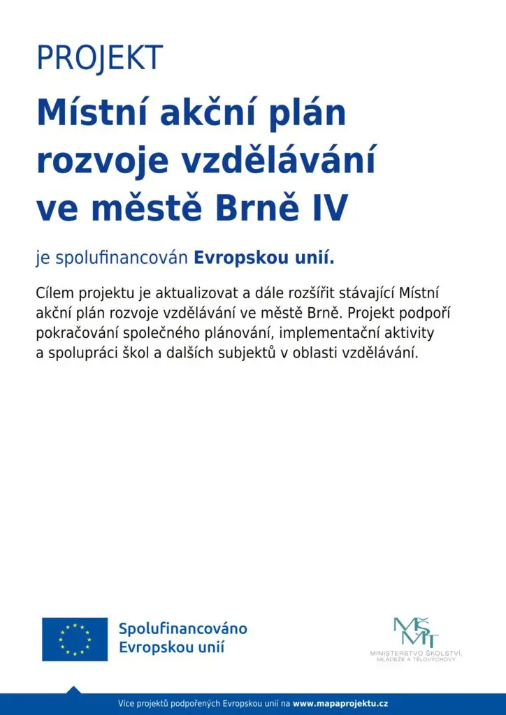WALDORFSKÁ ŠKOLA BRNO je zapojena jako partner v projektech Statutárního města Brna.